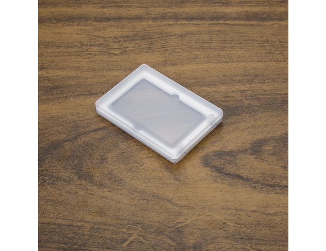 Estojo plástico para pen card transparente, parte interna revestida com espuma e fecha por encaixe. Tamanho total aproximado (CxD): 10,4 cm x 7,2 cm. Peso aproximado (g): 21