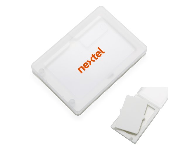 Estojo plástico para pen card transparente, parte interna revestida com espuma e fecha por encaixe.