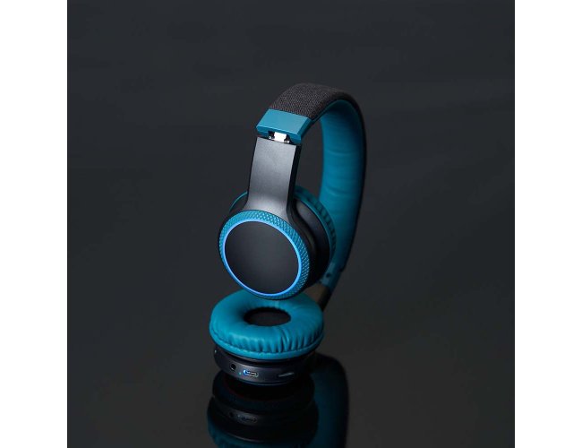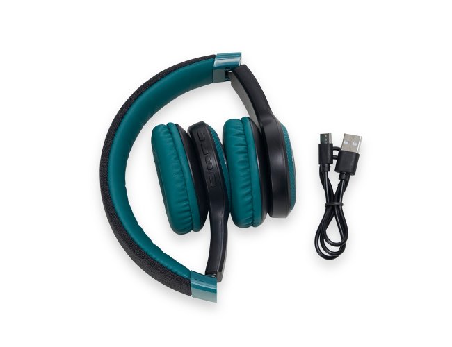 Fone de ouvido bluetooth. Possui revestimento de couro sintético com espuma interna, garantindo um ótimo isolamento do som externo, luzes LED RGB, hastes articuláveis com altura regulável, permitindo que o fone seja guardado de maneira compacta, revestimento de tecido na parte superior da hastes, microfone para atendimento de chamadas, botões Play/Pause, M (modo), + e – no corpo do fone. Executa nos modos bluetooth, Auxiliar P2, Rádio FM e Cartão TF (Microsd). Acompanha cabo USB tipo-C.