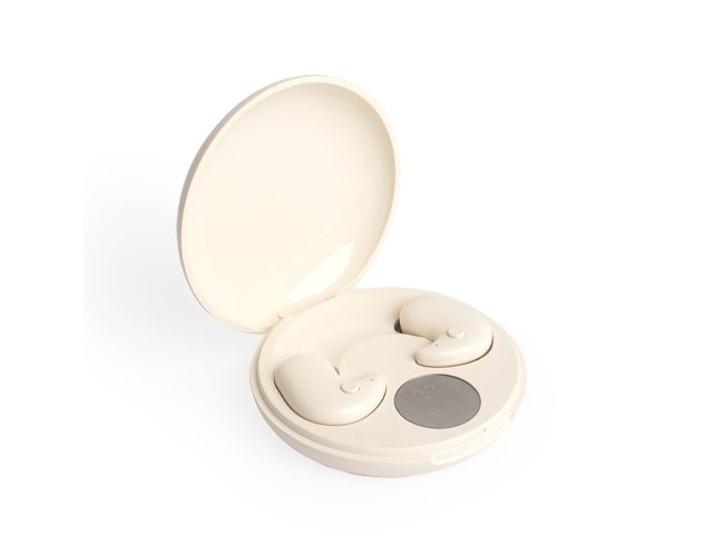 Fone de ouvido bluetooth vem com um botão para comandos e um case carregador com display de bateria. Também possui um modo sono, onde funciona por 45 minutos antes de desligar automaticamente. Acompanha USB Tipo-C, cordão de silicone e 2 pares de eartips em diferentes tamanhos.