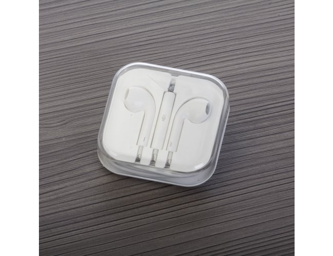 Fone de Ouvido Pequeno Personalizado 12789 com a sua logomarca estéreo com microfone e controle de volume. Fone de ouvido plástico na cor branca, entrada P2, possui indicativo L(left) e R(right) na área interna do fone, detalhes internos vazados no fone(possibilita a visão da tela de proteção), microfone acoplado no suporte com desenho indicativo e no verso do suporte controle de volume com desenho indicativo – e +. Acompanha embalagem plástica branca com tampa acrílica transparente.