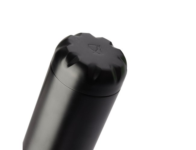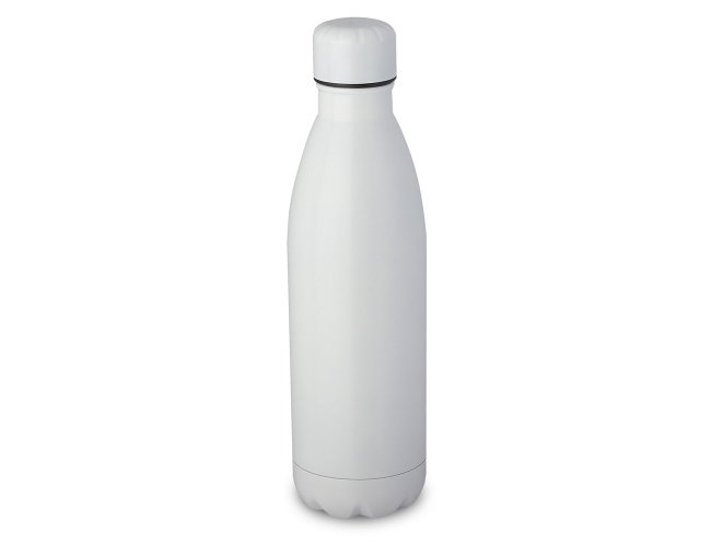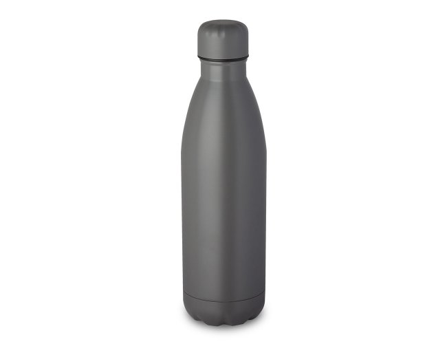 Garrafa fosca em aço inox com capacidade de até 750 ml. Tampa rosqueável e anel de silicone para vedação. Design com frisos na tampa.
