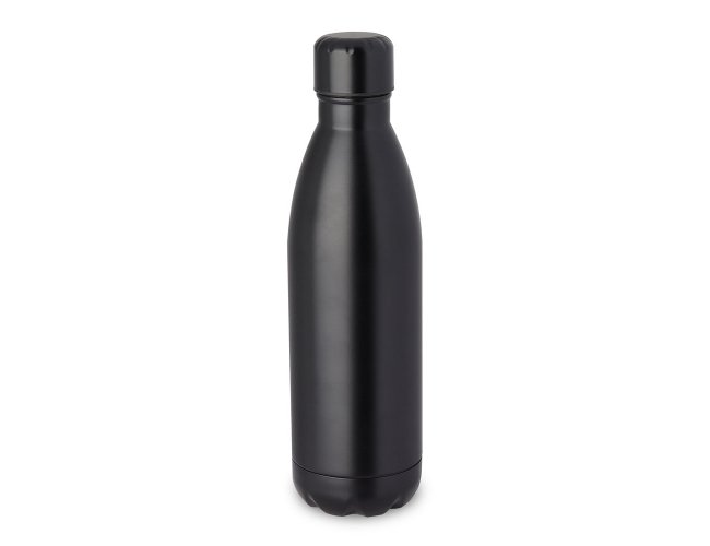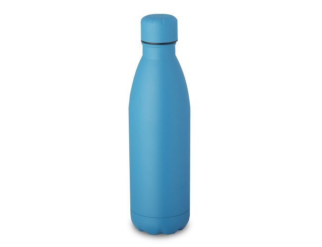 Garrafa fosca em aço inox com capacidade de até 750 ml. Tampa rosqueável e anel de silicone para vedação.