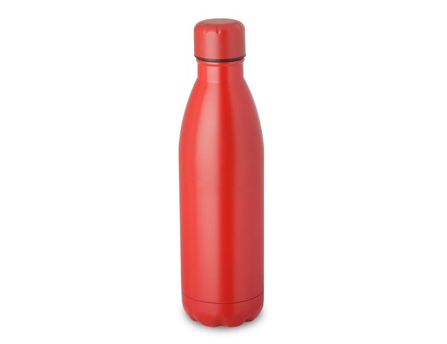 Garrafa fosca em aço inox com capacidade de até 750 ml. Tampa rosqueável e anel de silicone para vedação. Design com frisos na tampa.