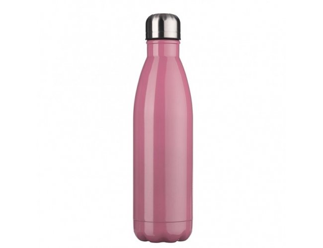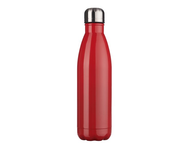 Garrafa 750ml em inox com tampa rosqueável e pintura brilhante. Obs.: Não é um modelo térmico.