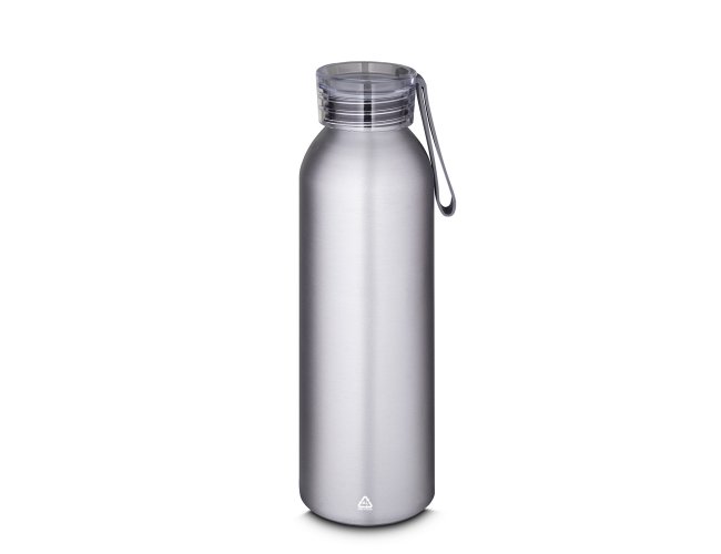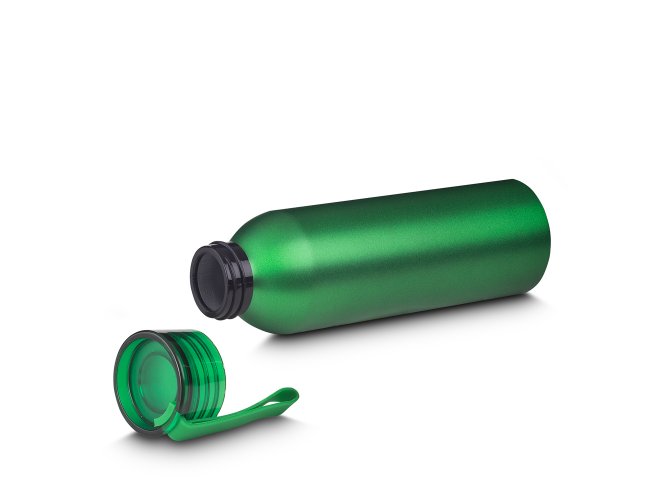 Garrafa em alumínio reciclável com tampa em plástico e alça emborrachada. Capacidade 600ml.