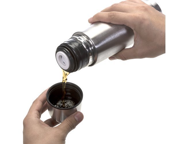 Garrafa térmica 350ml em inox com tampa rosqueável, tampa interna em plástico resistente(basta um clique para abrir ou fechar). Acompanha capa protetora de couro sintético com alça de nylon. Tamanho total aproximado (CxD): 19,7 cm x 6,8 cm. Peso aproximado (g): 274