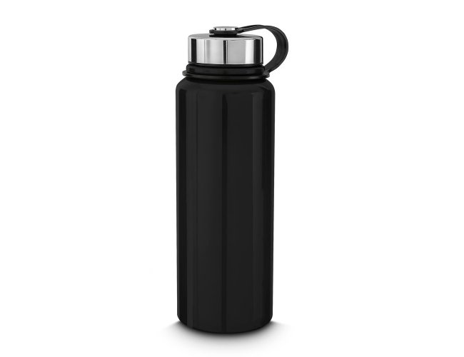 Garrafa térmica em aço inox com parede dupla com capacidade de 1L. Tampa em aço inox rosqueável com anel de silicone para vedação. Possui alça de transporte em plástico. Pintura brilhosa.