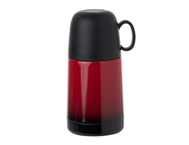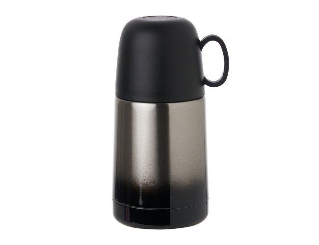 Descrição: Garrafa térmica 250ml com acabamento degradê, contém tampa hermética rosqueável com botão de acionamento e tampa externa plástica com alça, podendo ser utilizada como xícara.