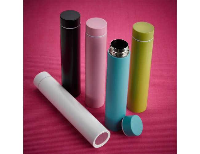 Garrafa térmica 275ml em inox com tampa rosqueável.