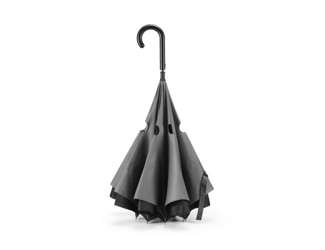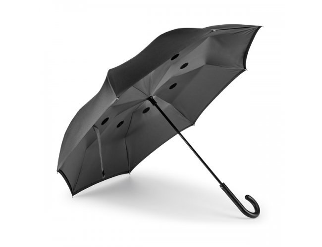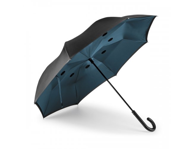 Guarda-chuva reversível 99146 Personalizado com a sua logomarca. Pongee 190T. Capa dupla. Cabo em metal e varetas em fibra de vidro. Abertura manual e fecho automático. Estrutura patenteada.