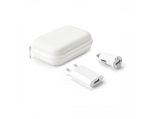 Kit de adaptadores USB. ABS. Incluso adaptador de corrente DC 110V/220V e adaptador para carro DV 12-24V. Fornecido com bolsa EVA. Bolsa: 112 x 80 x 45 mm