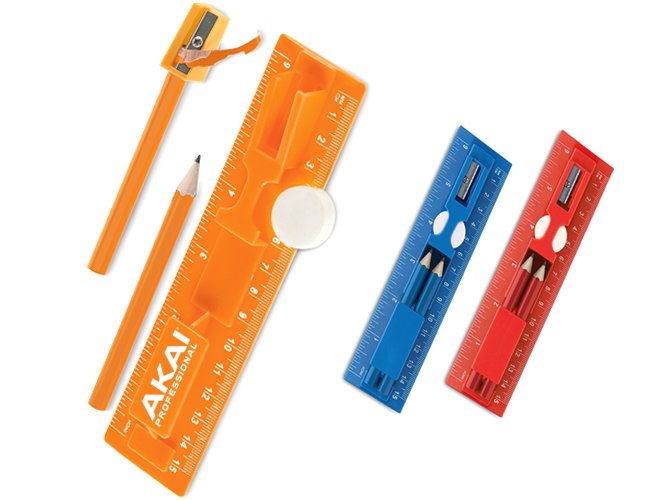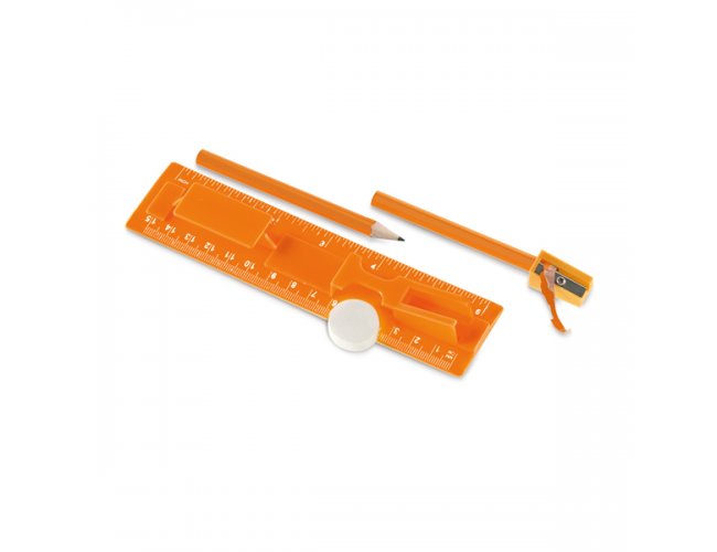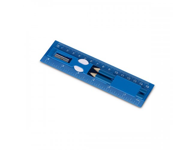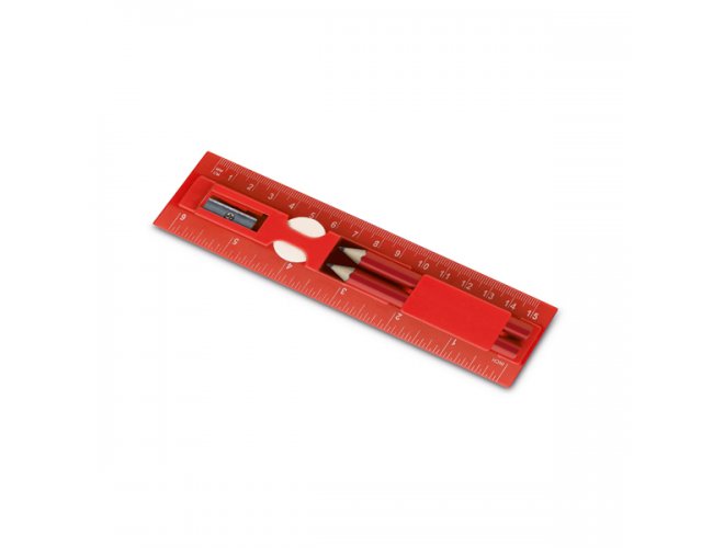 Kit de escrita. PS. Incluso régua de 15 cm, 2 mini lápis, 1 borracha e 1 apontador. Régua: 157 x 42 x 15 mm
