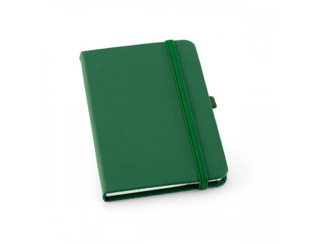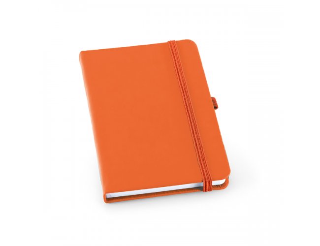 Caderno capa dura. C. sintético. Com porta esferográfica e 80 folhas pautadas. 90 x 140 mm