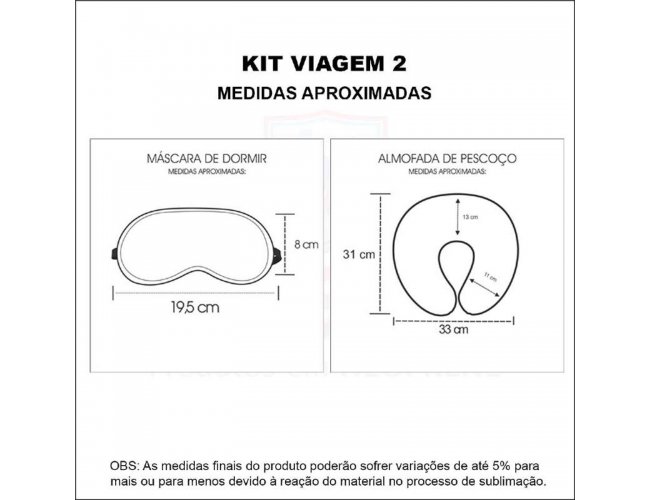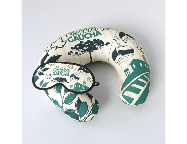 Kit Viagem 2 Almofada de Pescoço + Máscara Dormir KTVG2 com a gravação colorida