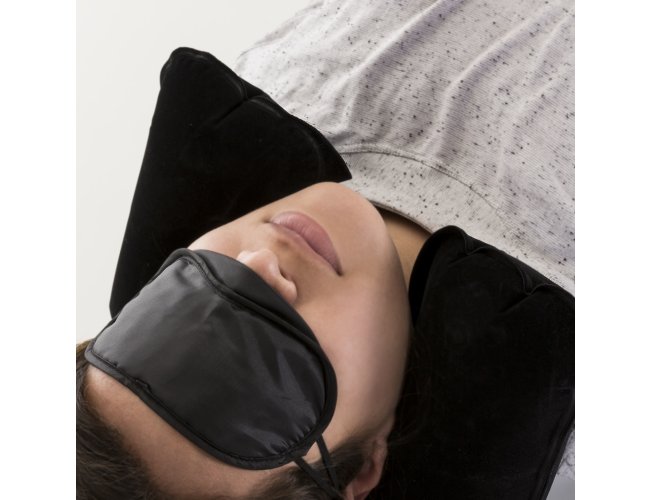 Kit viagem com 3 peças, contém: travesseiro inflável(revestido de veludo), máscara para olhos de cetim(revestido com espuma) e um par de protetor auricular.