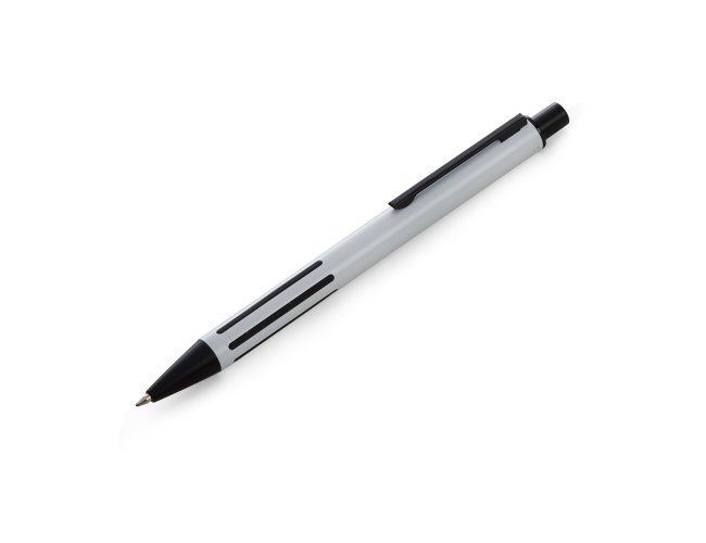 Lapiseira metal com pintura fosca e detalhes preto Personalizada com a sua logomarca. Clip metal, possui seis traços pretos emborrachados na parte inferior. Aciona por clique.