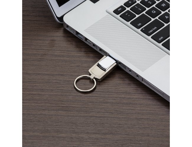 Mini pen drive chaveiro 8GB prata fosco com tampa metak brilhante, acompanha chaveiro.