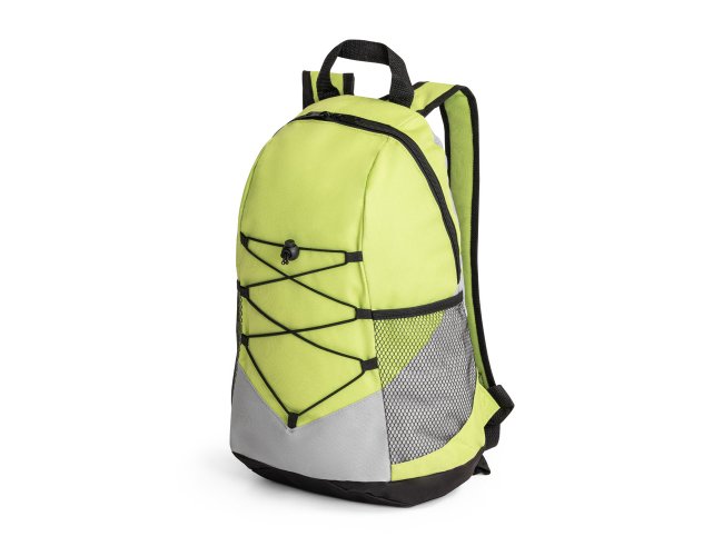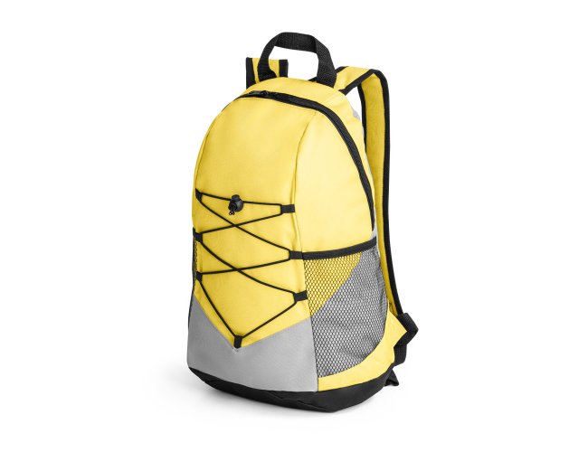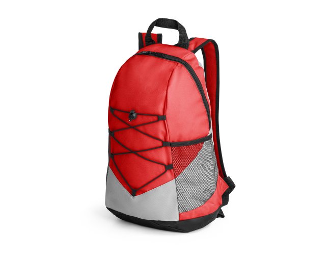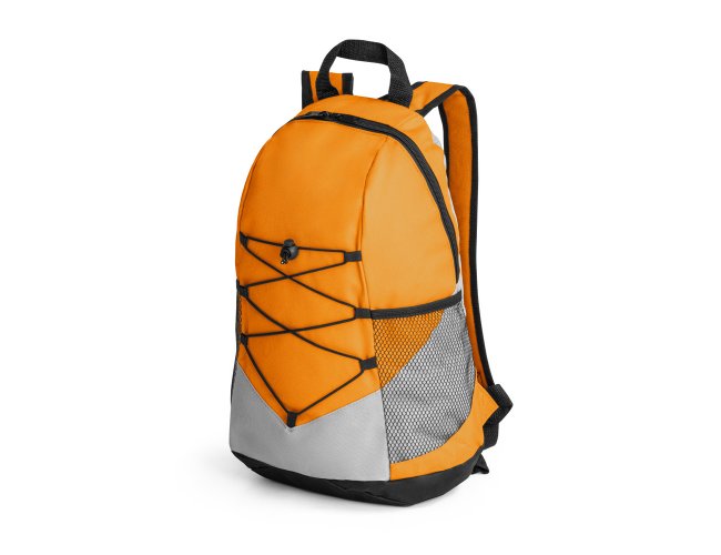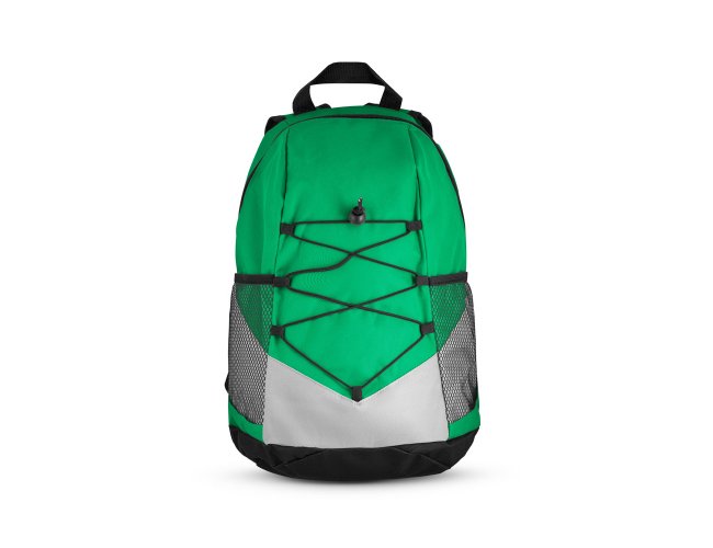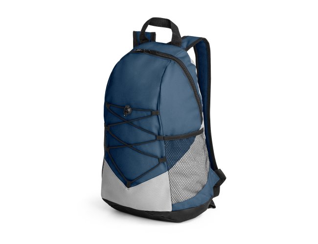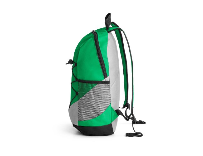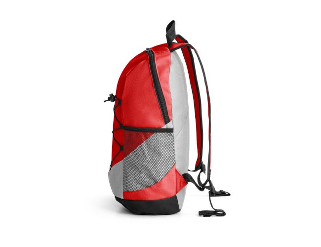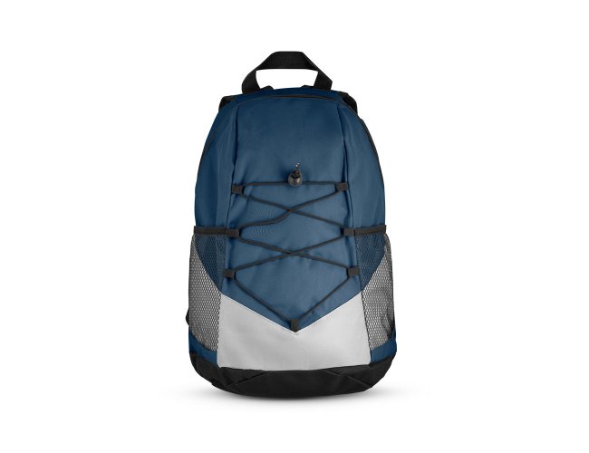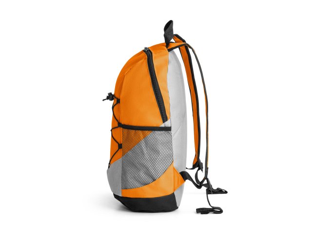 Mochila em 600D com bolsos laterais em tela e bolso interior. Parte posterior e alças almofadadas. 250 x 420 x 180 mm