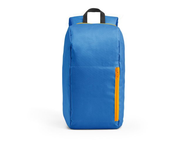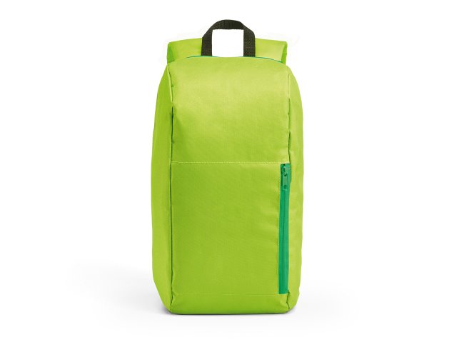 Mochila. 600D. Bolso exterior frontal com zíper. Parte posterior almofadada, com sistema de apoio acolchoado para as costas e alças almofadadas. Dimensões: 245 x 400 x 115 mm.