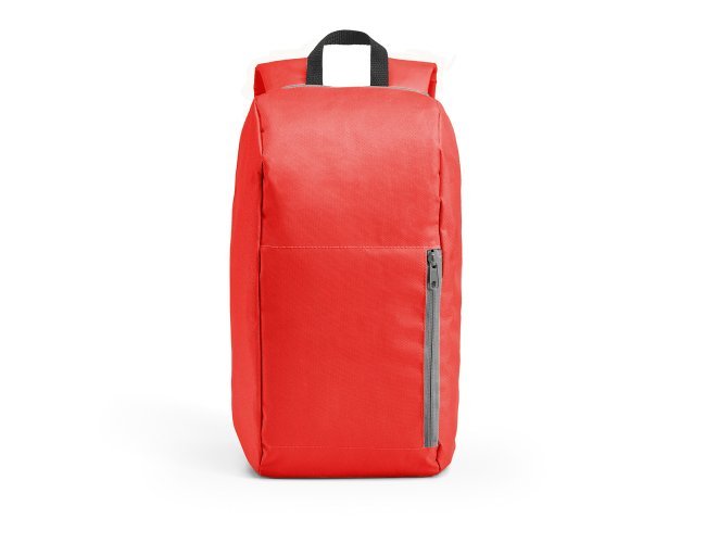 Mochila. 600D. Bolso exterior frontal com zíper. Parte posterior almofadada, com sistema de apoio acolchoado para as costas e alças almofadadas. Dimensões: 245 x 400 x 115 mm.