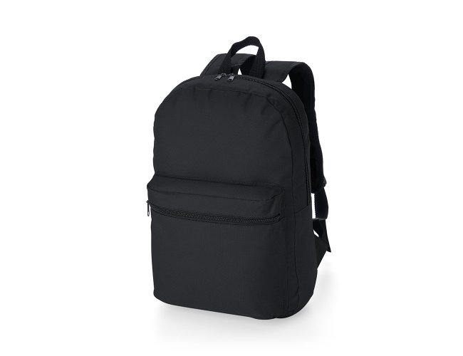 Mochila confeccionada em Nylon 17 Litros. Contém bolso frontal com zíper, alça de mão em nylon e alças para as costas ajustáveis.