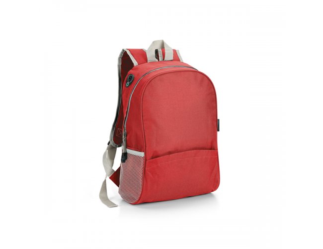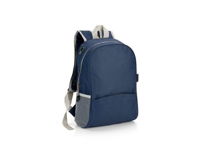 Mochila. 600D. Com saída para fone de ouvido. Interior forrado, com bolso. 2 bolsos laterais em rede. Parte posterior e alças almofadadas. 270 x 400 x 140 mm