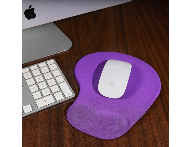Mouse Pad ergonômico de neoprene com apoio para o punho de espuma. Parte inferior em material antiderrapante, que ajuda a impedir o deslizamento do mouse pad.