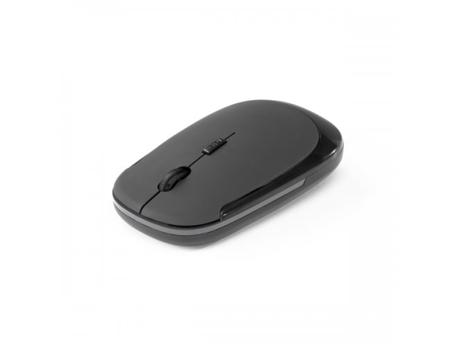 Mouse wireless 2.4G. ABS. Acabamento emborrachado. Incluso 2 pilhas AAA. 65 x 105 x 20 mm