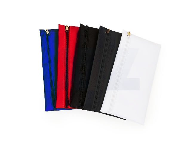 Necessaire de nylon 600 com zíper, frente e verso liso.