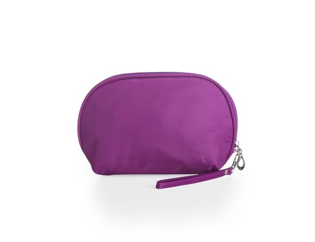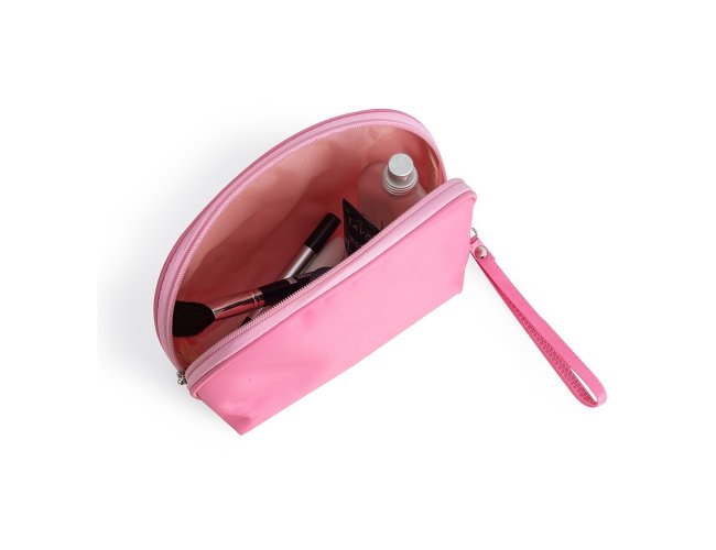 Necessaire impermeável de nylon com forro em poliéster, acompanha alça com gancho para encaixe.