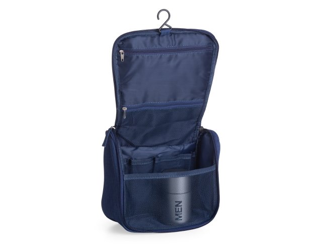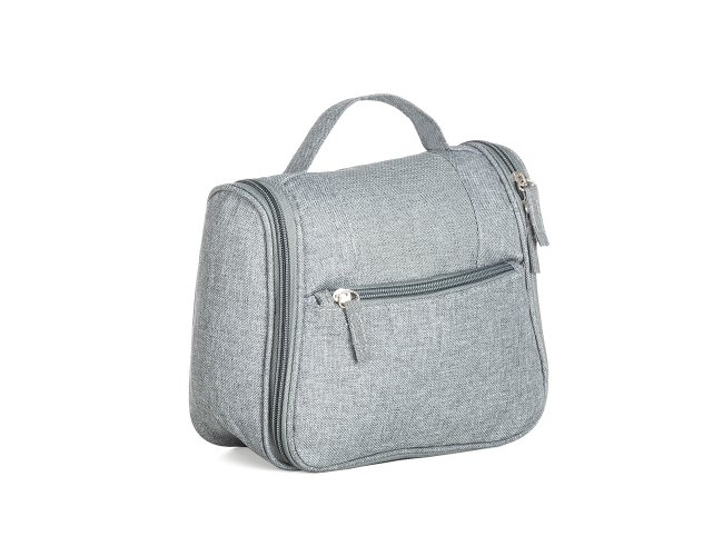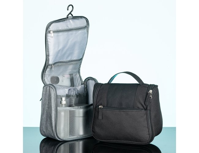 Necessaire organizadora em tecido nylon Oxford, possui bolso frontal e alça superior, parte interna com gancho plástico; bolso interno superior em nylon e bolso de tela ambos com zíper; bolso inferior aberto de tela com 4 divisões de bolsos também em tela. Perfeita para lhe acompanhar em viagens e até mesmo transportar seus itens pessoais do dia a dia com organização e praticidade.