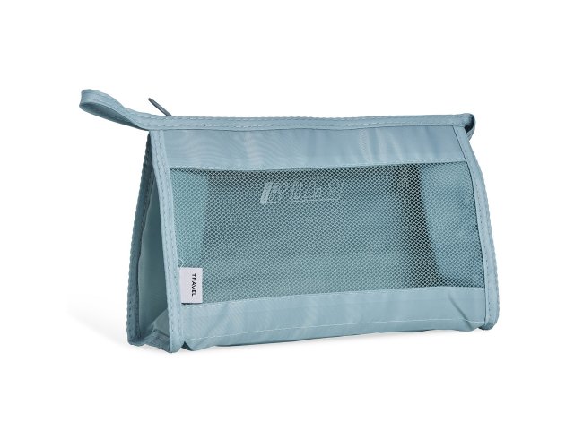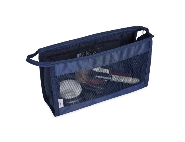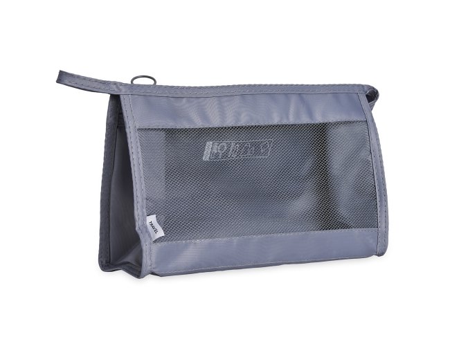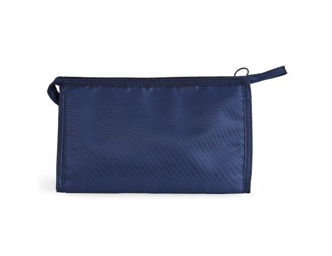 Descrição: Nécessaire organizadora em poliéster, possui compartimento principal com bolso de zíper resistente à água.