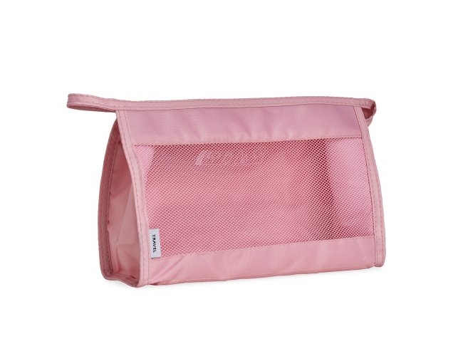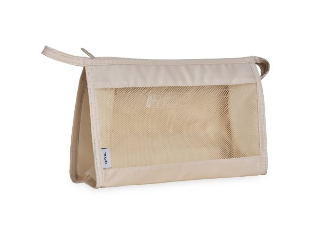 Nécessaire organizadora em poliéster, possui compartimento principal com bolso de zíper resistente à água.