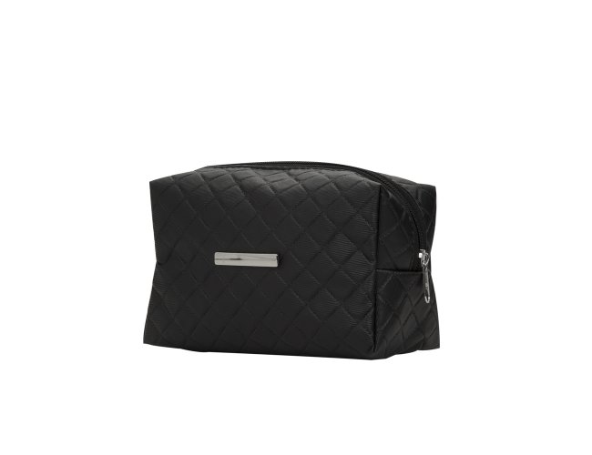 Necessaire puff matelassê, material em couro sintético. Possui uma plaqueta prata no centro para gravação.