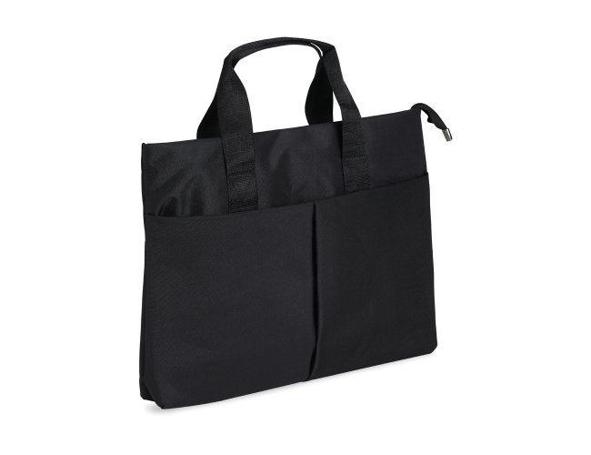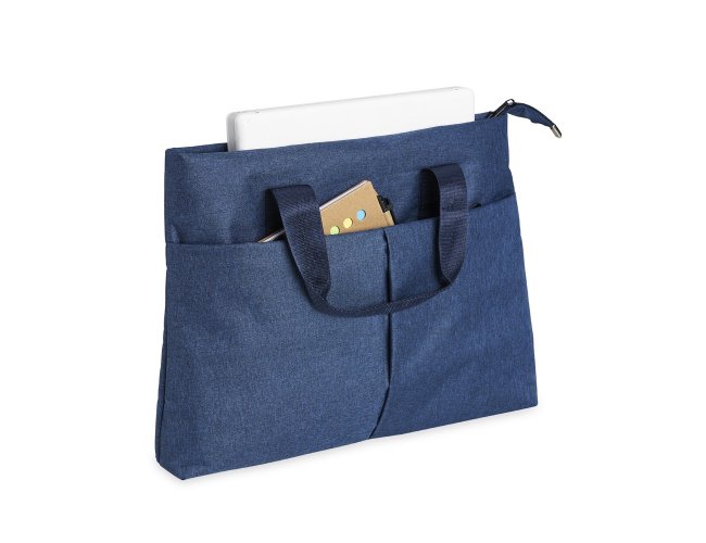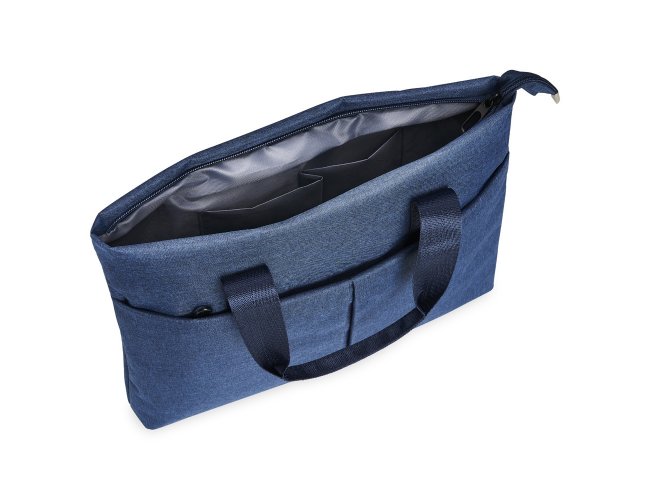 Pasta para notebook 15 em poliéster resistente à água com dois compartimentos, sendo o principal para notebook com bolsos internos e um compartimento frontal.