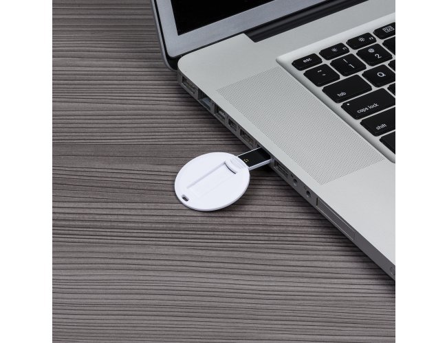PenCard 8GB com Carcaça redonda. Parte inferior com um “furo” para colocar algum cordão. Personalizada com a sua logomarca.