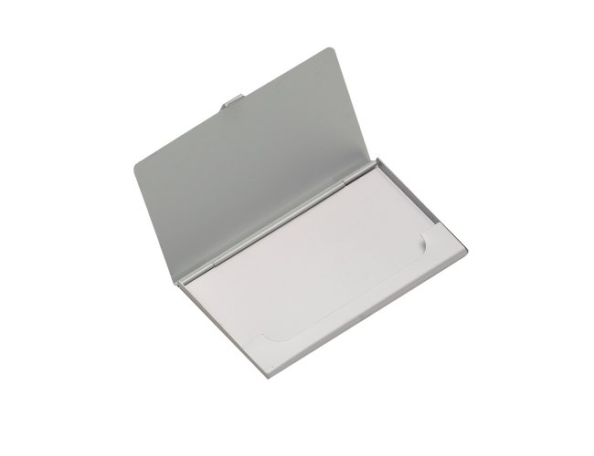 Porta cartão de bolso 2249 Personalizado de alumínio frente e verso liso, fosco. Tamanho total aproximado (CxD): 5,9 cm x 10 cm. Peso aproximado (g): 15