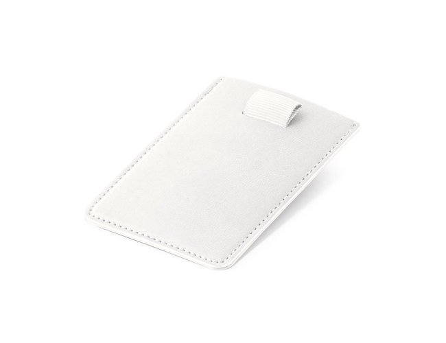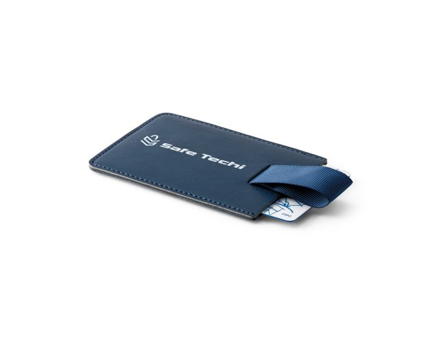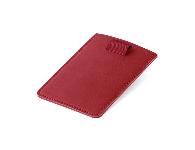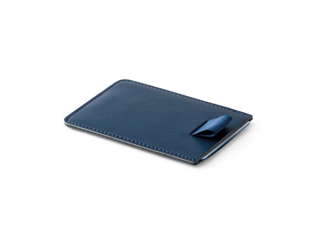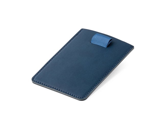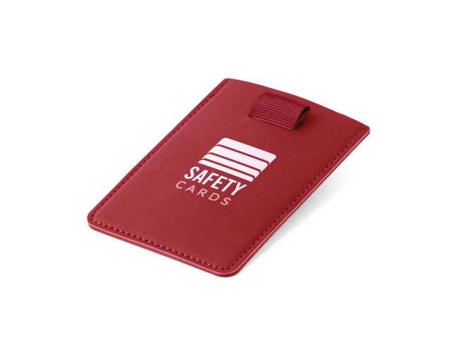 Porta cartões em PU com bloqueio de RFID e fita em poliéster para retirar facilmente seus cartões. Com capacidade para guardar até 2 cartões. 92 x 65 mm