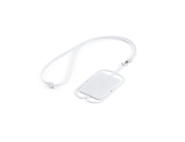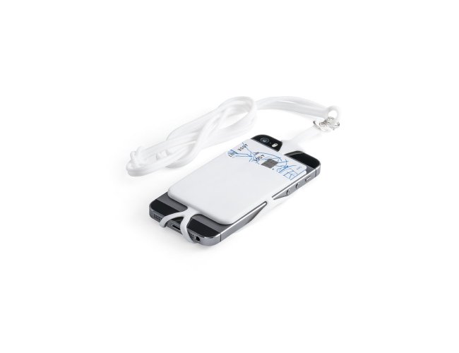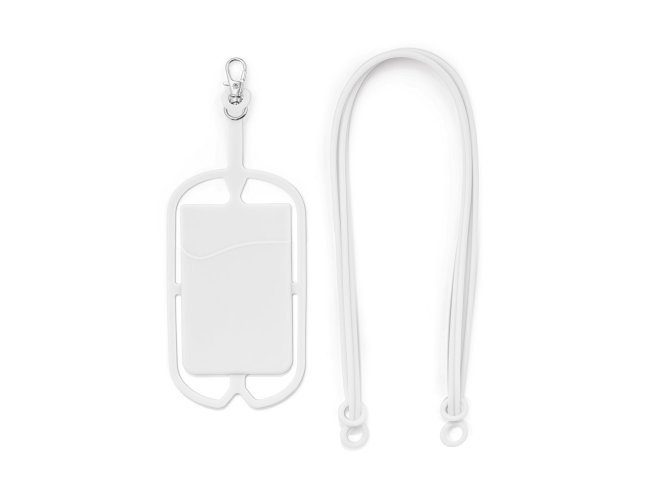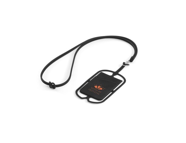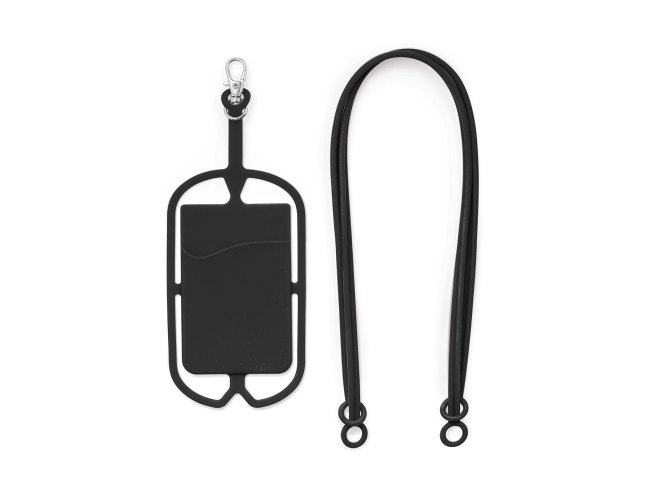 Porta cartões em silicone com cordão e suporte para celular. Porta-cartões: 57 x 86 x 4 mm | Lanyard: 420 mm