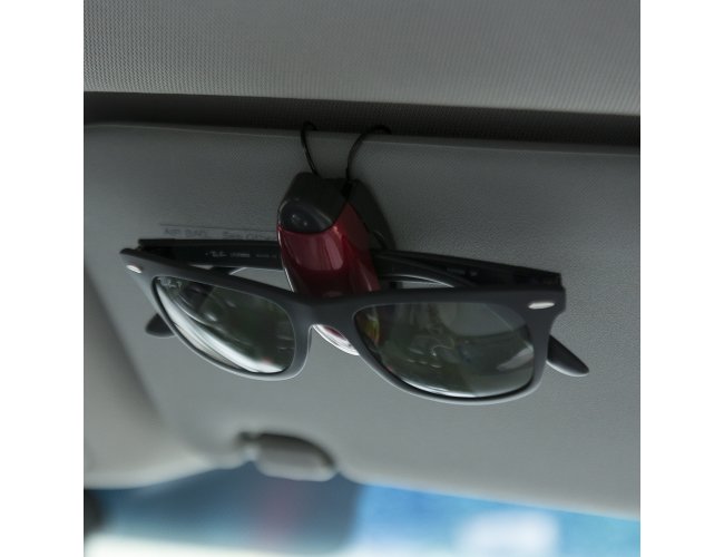 Porta óculos plástico com haste metálica.