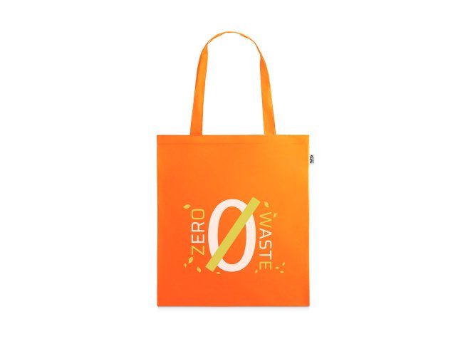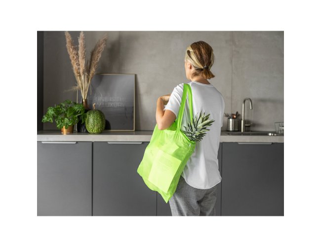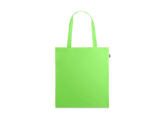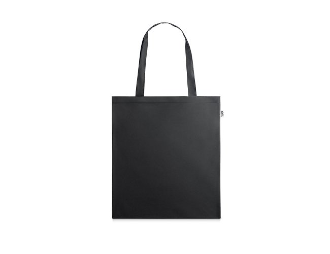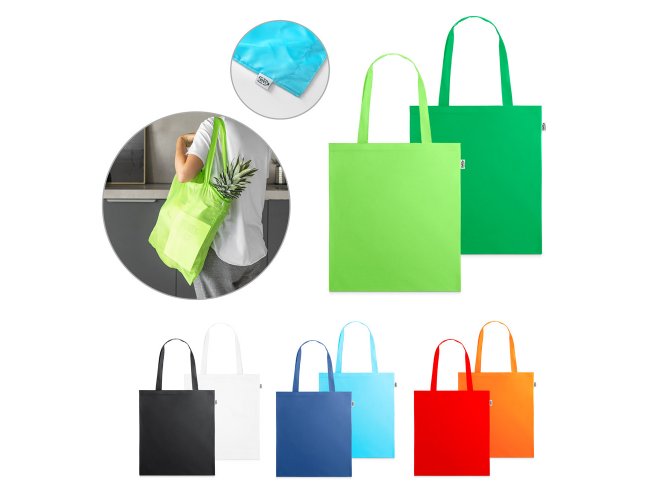 Sacola em rPET 190T. Produzida a partir de plástico reciclado contribuindo para a redução dos resíduos no meio ambiente. Alças de 60 cm. 380 x 420 mm