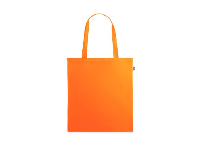 Sacola em rPET 190T. Produzida a partir de plástico reciclado contribuindo para a redução dos resíduos no meio ambiente. Alças de 60 cm. 380 x 420 mm