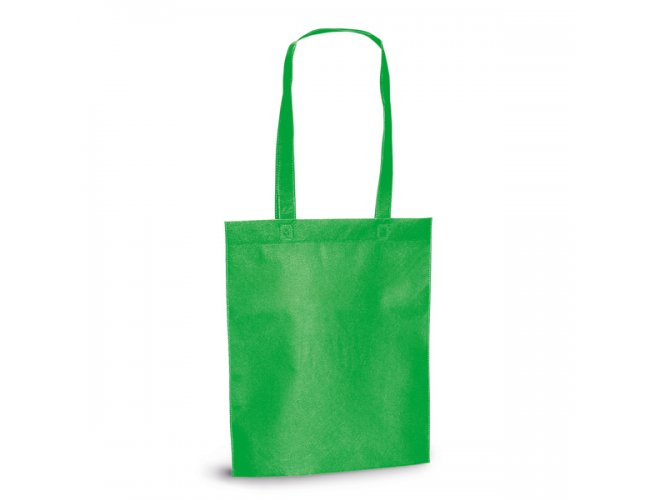 Sacola. Non-woven: 80 g/m². Termo-selado. Alças de 55 cm. 270 x 350 mm