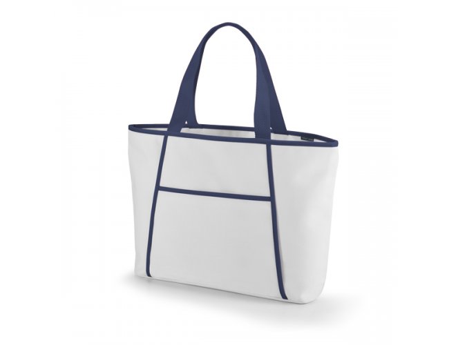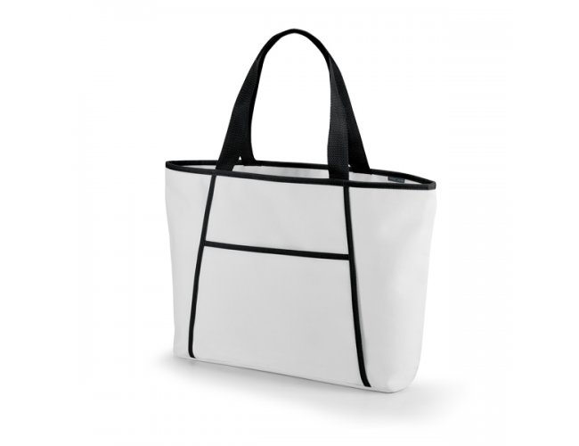 Sacola térmica LOLLA Personalizada 98417 com a sua logomarca. 600D. Fecha com zíper. Compartimento exterior aberto (forrado) com bolso frontal. Alças em webbing de 55 cm. Food grade.