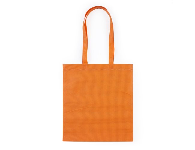 Sacola colorida com alça em material TNT, possui símbolo ecológico/reciclável na costura da alça. Personalizada com a sua logomarca. Tamanho total aproximado (CxD): 41,2 cm x 37,2 cm – Alça 30,5 cm. Peso aproximado (g): 34