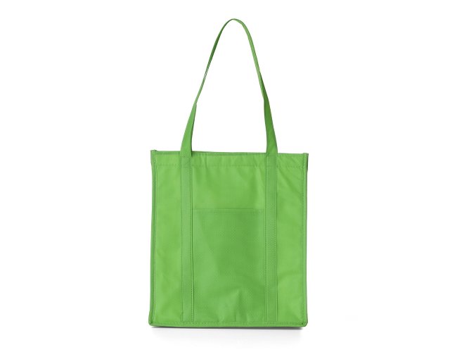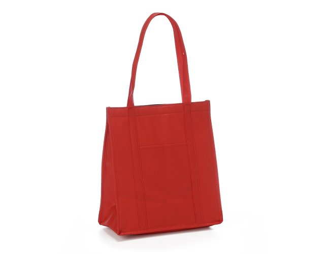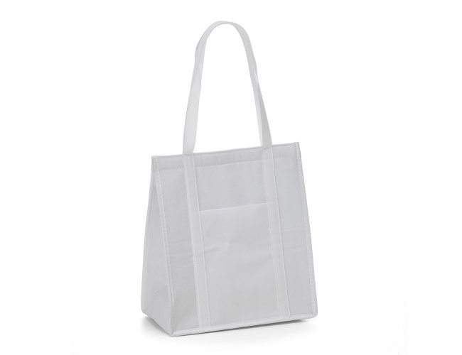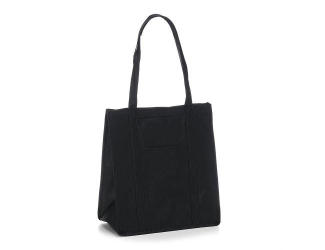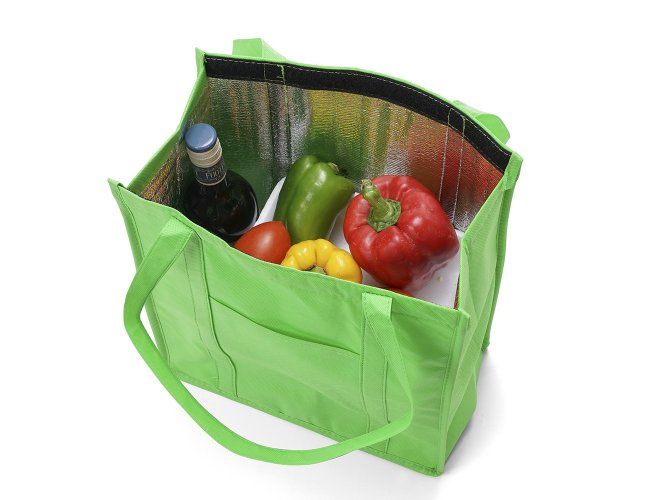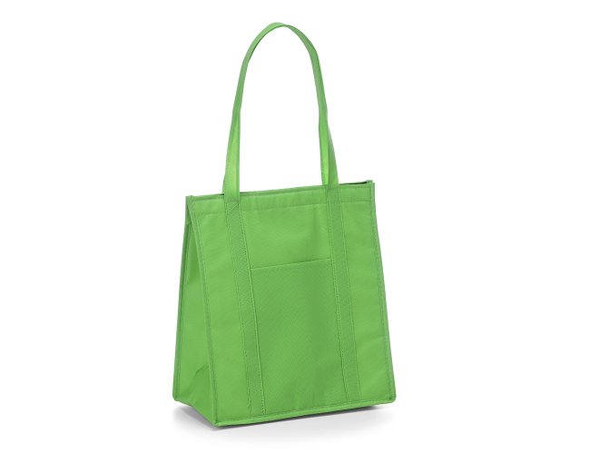 Sacola térmica com capacidade de 18 litros, contém fechamento em velcro e bolso frontal.