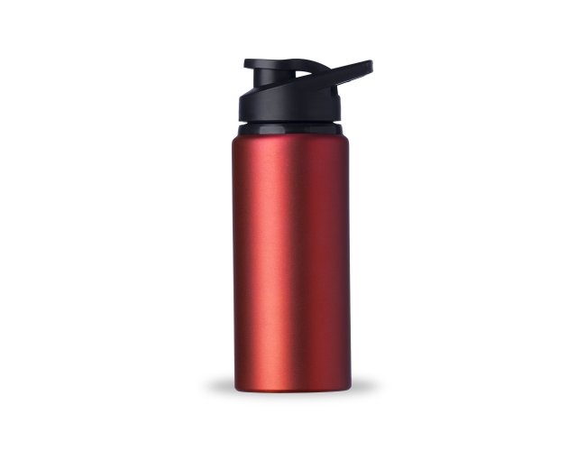 Squeeze alumínio de 600ml com pintura fosca. Squeeze com tampa plástica rosqueável, alça e tampa protetora para o bocal.