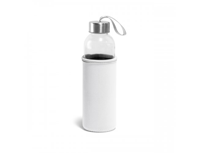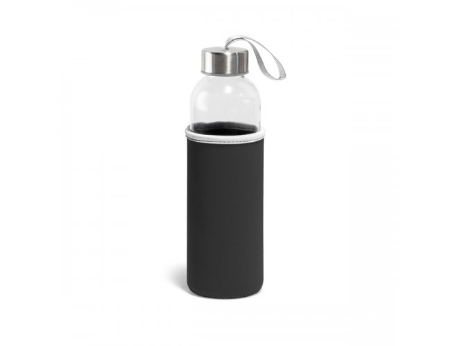 Squeeze Personalizado 94646 com a sua logomarca. Vidro e aço inoxidável. Capacidade: 520 ml. Fornecido com luva em softshell. Food grade.