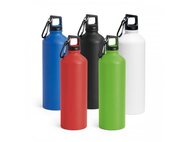 Squeeze. Alumínio. Acabamento matt. Com mosquetão. Capacidade até 800 ml. Food grade.